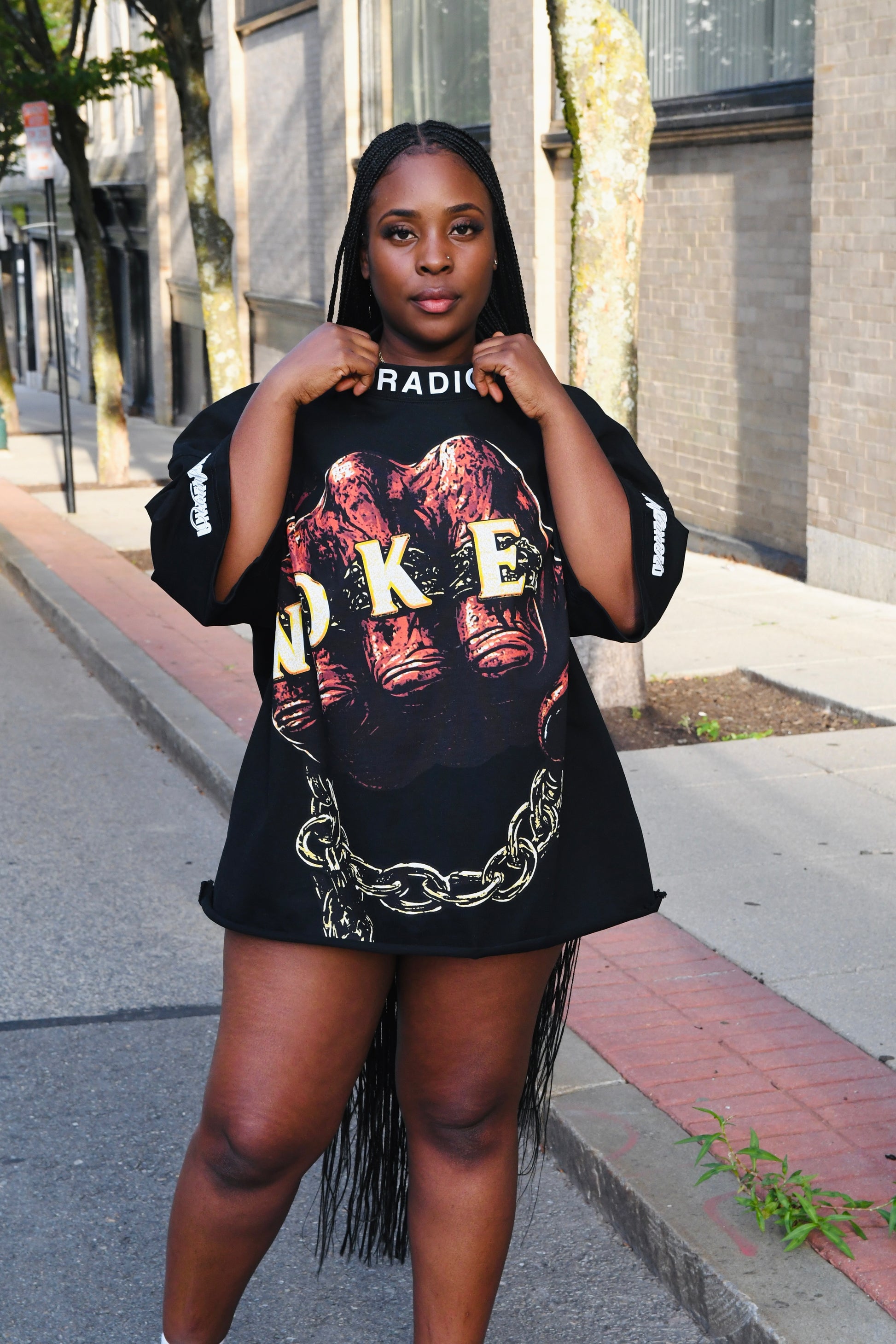 This bold streetwear piece features a raised fist wrapped in broken chains — a symbol of resistance, freedom, and unapologetic truth. The distressed hems give it a raw, lived-in edge, while the word “Uninfluenced” stamped on each sleeve declares your independence from trends, systems, and silence. Made for those who stay conscious, challenge the norm, and wear their truth with dignity.